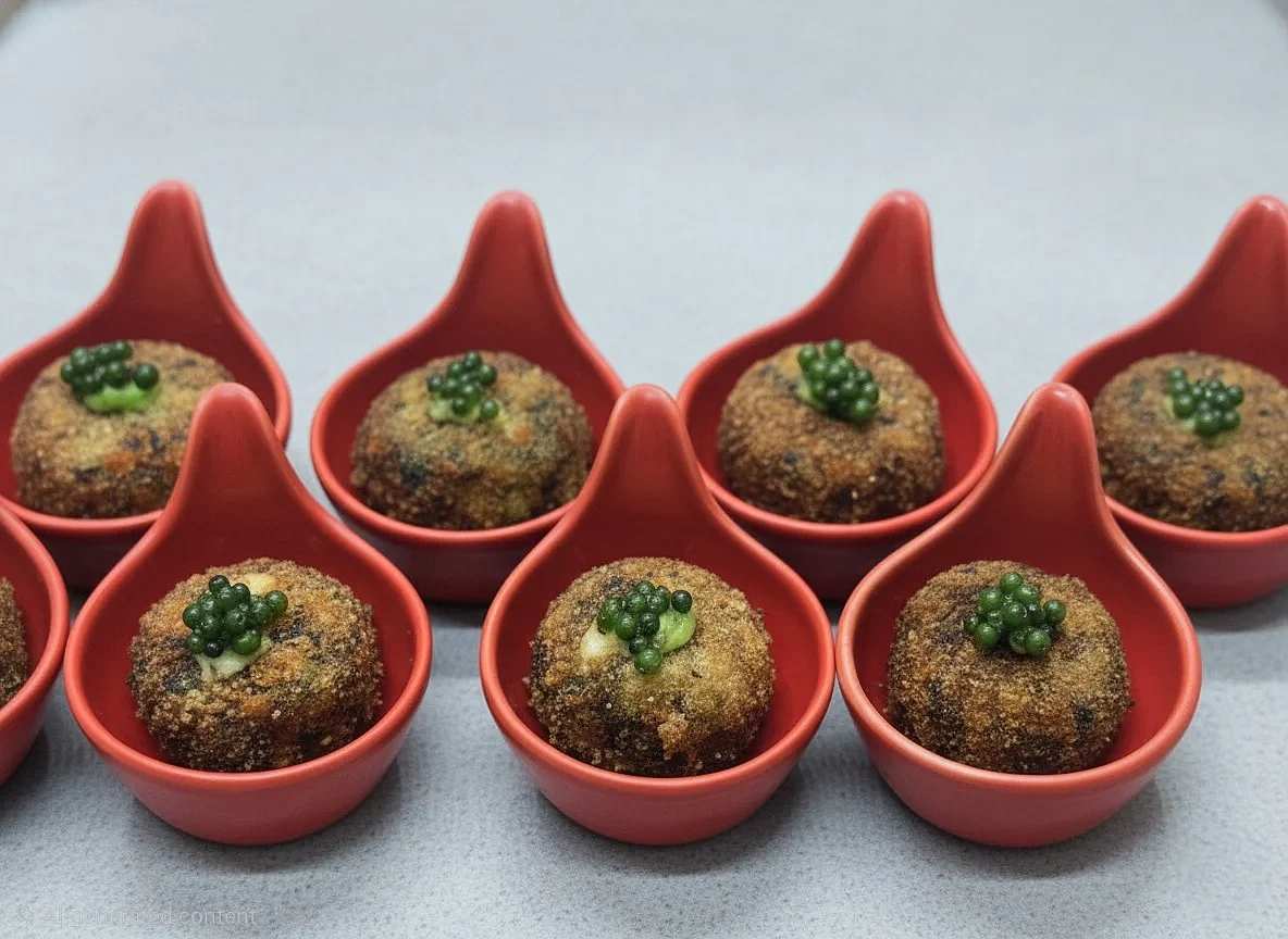 Oleskan dengan lembut daun emas 24 karat yang dapat dimakan di atas setiap vada, melambangkan kesenangan yang memberi nama pada hidangan ini — Mercedes Chaat.